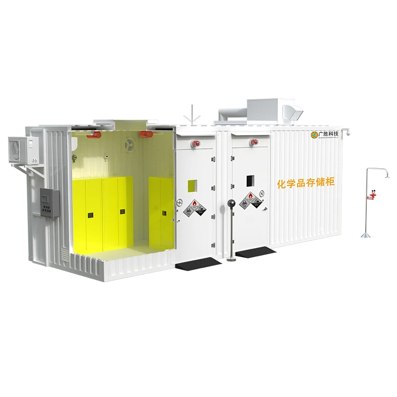 Kasama sa istruktura ng panlabas na pansamantalang storage cabinet ang kahon, software management system, IoT cloud management platform, lightning-protection at anti-static grounding system, high-definition explosion-proof monitoring system, explosion-proof power supply system, pare-pareho ang temperatura at halumigmig na sistema, explosion-proof lighting system, autonomous monitoring at alarm system, fire intelligent na sistema ng pamamahala, sistema ng pamamahala ng intelihente sa sunog, sistema ng pag-uuri at pag-iimbak ng panloob, sistema ng pag-uuri at pag-iimbak ng panloob sistema, sistema ng paggamot sa paglilinis ng tambutso ng gas, sistema ng personal na proteksyon, sistema ng reserbang suplay ng paglilinis, sistema ng awtomatikong pagluwag ng presyon, emergency shower at iba pang mga yunit ng system. Maaaring piliin ng mga user ang functional system ayon sa talahanayan ng mga kinakailangan sa pagsasaayos na ibinigay ng Guangsheng Technology.